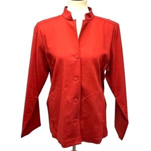 Eileen Fisher Cotton Blend Stand Collar Button Front Textured Blazer Women Large