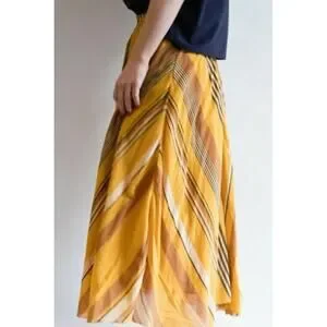 NE QUITTEZ PAS Striped Midi mustard Size S Womens midi Skirt #CB4