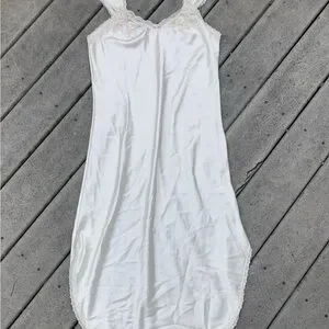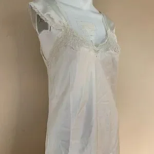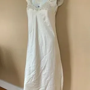 This dress is amazing in person. Super White collar with dainty lace trim and cap sleeves. This is a slip dress with no flaws that I can see- just a bit wrinkly but that’s an easy fix. Brand is Barbizon.
