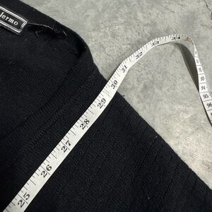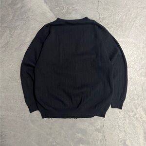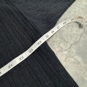 black ribbed V-neck cardigan with a classic button front. Soft knit fabric with front pockets for practical style. Versatile black color pairs easily with casual or smart-casual outfits.