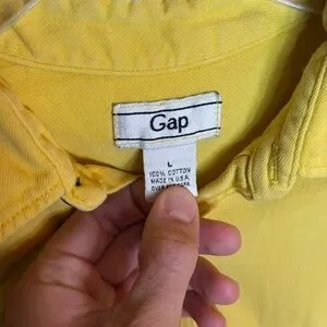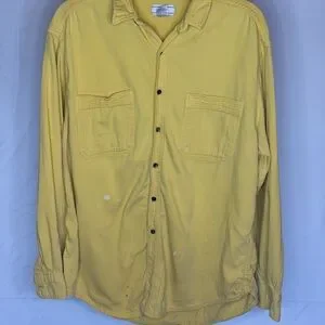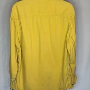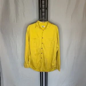 Vibrant yellow shirt with button-down front. Two chest pockets. Long sleeves with button cuffs.