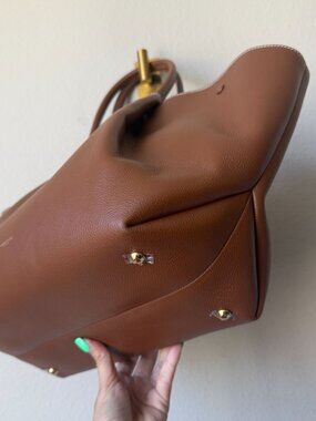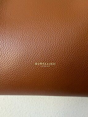 NEW with tags Demellier London "The New York" tote in rich tan small grain leather with contrast ecru stitching and gold-tone hardware. Structured yet softly slouchy silhouette with double top handles, magnetic closure, snap sides and spacious interior. Perfect for everyday or work carryall. Still has plastic on hardware.