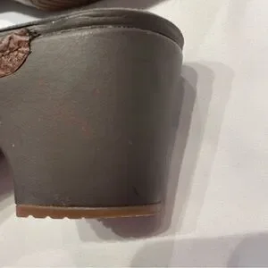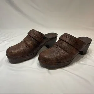 Crocs Brown Embossed Leather-Look Heeled Mules Slide On Women’s Size 10 Shoes