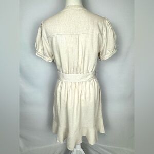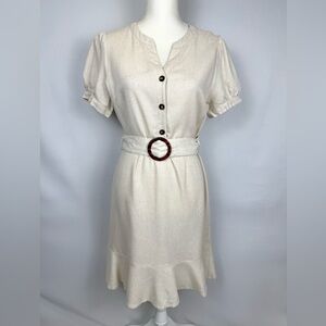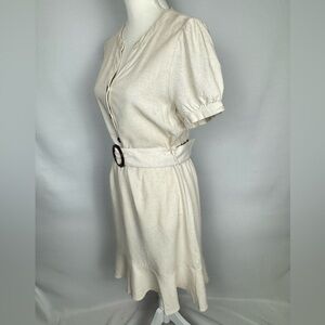 NWT Monteau Shirtdress Short Sleeves Linen Blend Belt Beige Medium Preppy