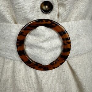 - Belted with tortoise shell buckle