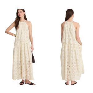 NEW Madewell Aubriella Midi Dress Embroidered Drop-Waist Floral Eyelet Cream