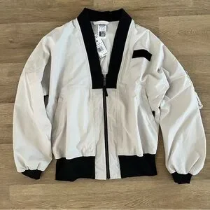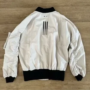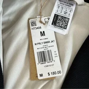 New with tags. Adidas Originals Men’s Parley Bomber Jacket in Aluminum (light beige and black). Full zip up front. Made with Parley for the Oceans.