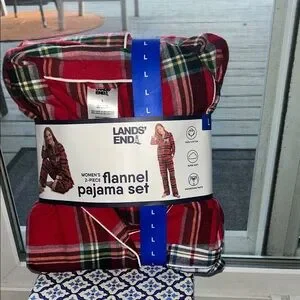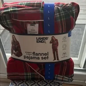 Lands' End Women’s Red Plaid Flannel 2-Piece Pajama Set - L
