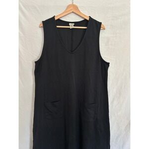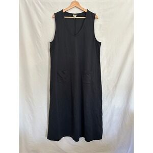 L L Bean Black Sleeveless V Neck Midi Dress Pockets Women's XL Regular
