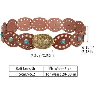 Features: Crafted from high-quality PU leather with a rustic finish, this adjustable belt features smooth, rotational discs that add an eye-catching boho and Western-inspired touch. It’s designed to fit comfortably up to 38 inches waist and is super easy to tighten or loosen to your perfect fit.