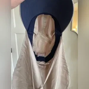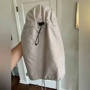 Light beige hat. 100% polyester fabric. Lightweight and packable. Simple, utilitarian design.