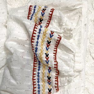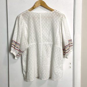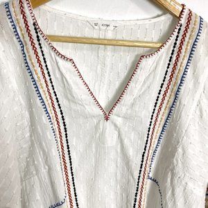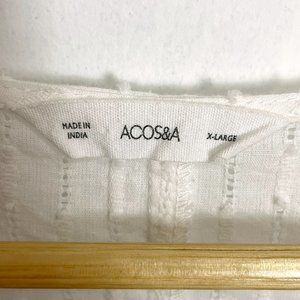 ACOS&A white boho cotton tunic top XL – embroidered v-neck, puff sleeves