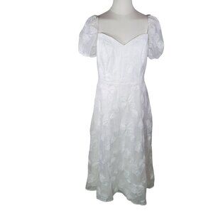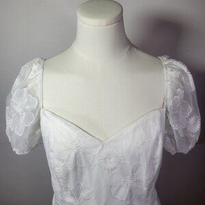 Lulus White Sweetest Behavior White Embroidered Puff Sleeve Midi Dress Size L