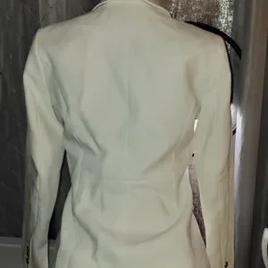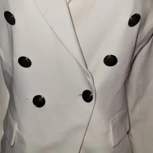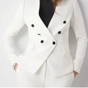 This elegant white double-breasted blazer is perfect for any occasion. Its sleek design and classic style make it a versatile addition to your wardrobe.