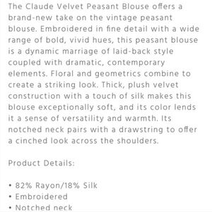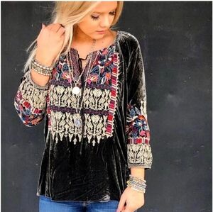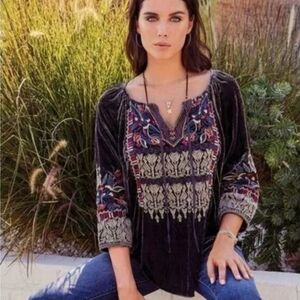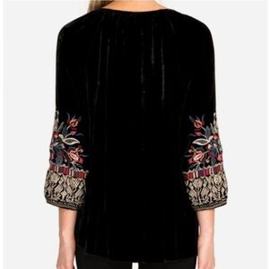 Johnny Was Embroidered Silk Blend Velvet Blouse. Soft and flowy and very flattering style.