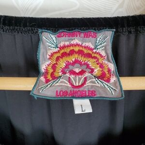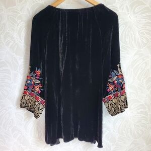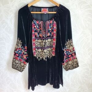 Johnny Was Silk Blend Claude Black Velvet Embroidered Peasant Tunic Top Sz Large