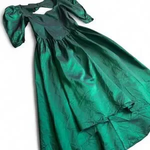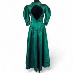 80s vintage dress emerald green dress taffeta dress puff sleeve dress gothic formal dress prom dress vintage formal open back dress bow detail dress princess dress dark romantic style vintage occasion dress