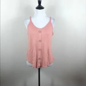 Pink waffle knit button detail tank top. Faux buttons. 95% rayon, 5% spandex.