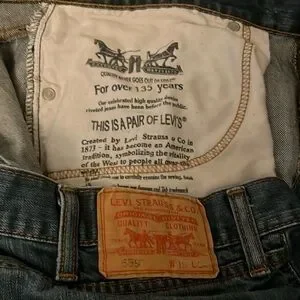 Great condition! Jeans in a Durable denim with classic pocket stitching. Features signature leather patch and red tab on pocket. Clean, versatile style for everyday wear.