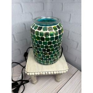 Used in excellent condition: Scentsy On The Seashore Wax Warmer, used in excellent condition. Please see all pics, as I show it on/off. Description: Hand-placed glass tiles capture the deep turquoise hues and subtle brown accents where the sea meets the sand. There may be wax/wax oil deposits on glass cup that holds wax, use as is or if you want to clean it, use scentsy counter clean soak.