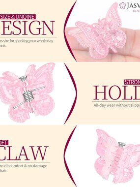 Perfect Mini Design: Butterfly-shaped claw clips are a mini size of 0.8 x 0.7 x 0.6 inches, with a 1.2-inch-width opening and 0.2-inch-long teeth. Designed like a flock of colorful butterflies, they add charm to your hair and are easy to carry and store