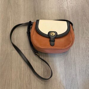 Women’s Two-Tone Saddle Crossbody Bag in Brown, Cream & Black