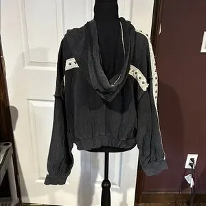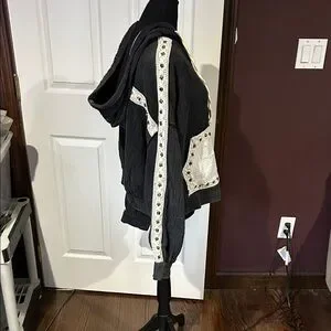 POL Black Zip-Up Hoodie with White Crochet Accents Buckle store sz M