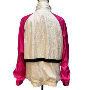 Vintage Bill Blass 90s Windbreaker Jacket Size L Pink White Color Block Women's