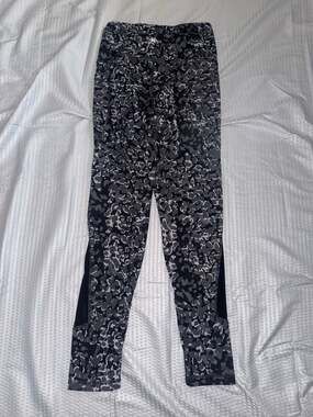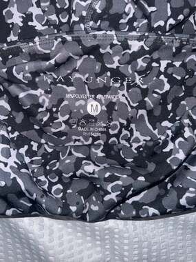 Kay Unger Mid-Rise Gray and Black Camo Patterned Mesh Panel Workout Leggings Siz