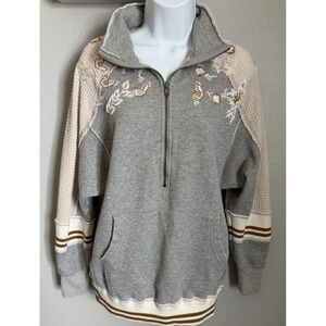 Gimmicks by BKE Pullover Sweater Womens Small Gray 1/4 Zip Beaded Shoulder Boho
