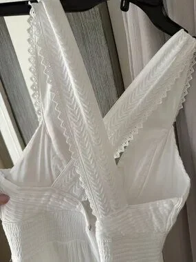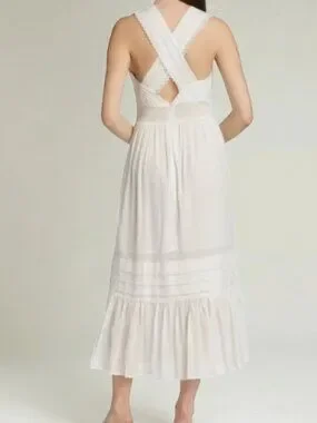 Magaschoni Lulu White Cotton Maxi Dress Women's Sz 6 ~ Excellent condition, worn once. Original price $238.00. Organic cotton gauze tiers with a scalloped, embroidered trim. Versatile and perfect for a Summer girls' brunch, a graduation, or a rooftop cocktail at the beach.