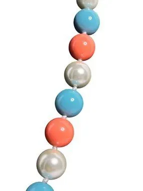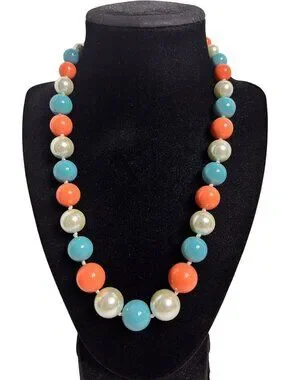 Colorful and elegant, this Nolan Miller necklace features vibrant graduated beads in coral, turquoise, and pearl tones. A gold-tone lobster clasp ensures secure wear. There are knots between each bead. It is signed Nolan Miller.