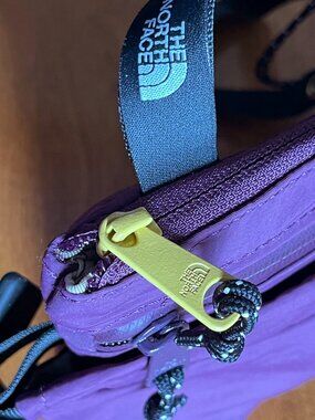 The North Face Mountain Crossbody pouch bag in "Black Currant" in plum and lilac purple. Made of nylon with lined pockets, great for light weather protection for a smartphone and other essentials. Adjustable shoulder strap that can be worn multiple ways. This style is perfect for outdoor activities and traveling since it's light but durable and packs away easily. Size is 11.25 x 2.25 x 7.88in according to the product description. NWT, never used.