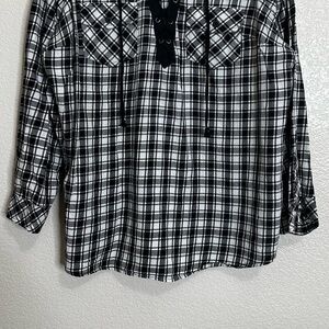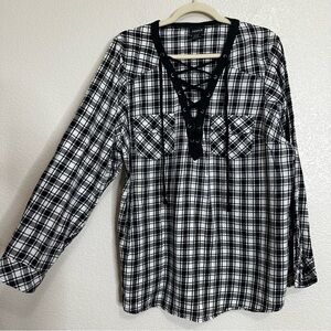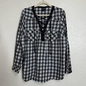Torrid Black White Plaid Flannel Lace-Up Pockets Long Sleeves Shirt, Size 2X