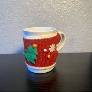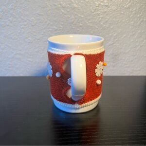 NEW Threshold White Stoneware Mug with Ugly Christmas Knit Sweater Cozy Sleeve