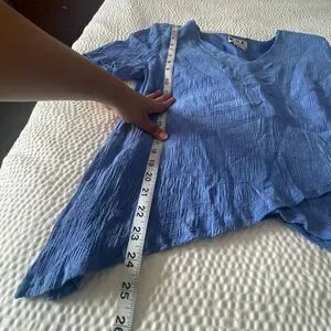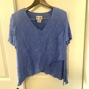 KSL Blue Textured Asymmetrical Blouse Women’s V-Neck Short Sleeve Top Size 16W