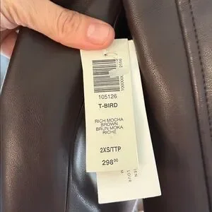 Chic vegan leather biker jacket by Wilfred. Features sleek design with silver hardware.