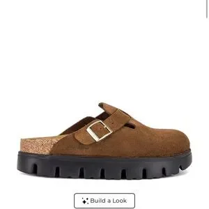 Birkenstock Brown Suede Clog Mule with Black Lug Sole
