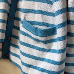 Boden Cream and Light Blue Striped Cardigan Blazer