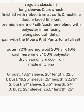 outer: 70% premium merino wool 20% silk 10% cashmere