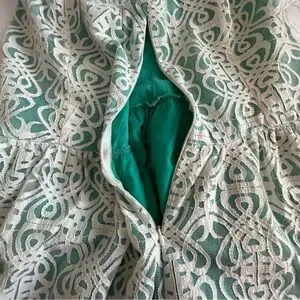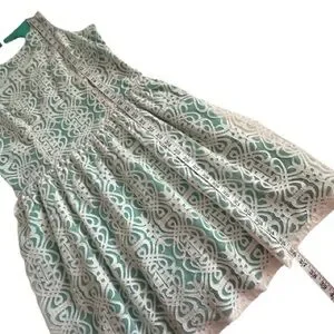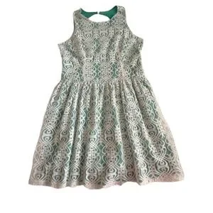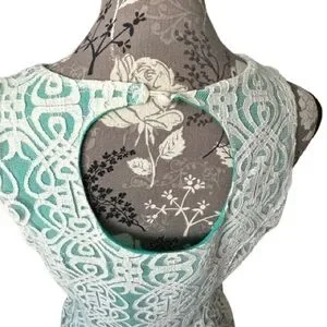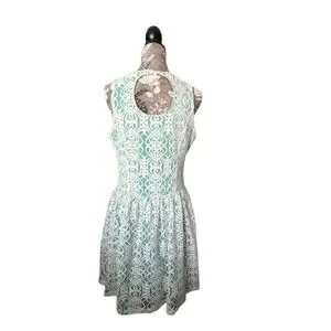 Pinky Women L Green Off White Lace Overlay Sleeveless Mini/Midi Round Neck Dress