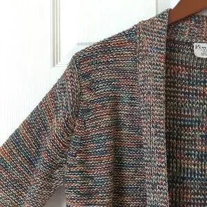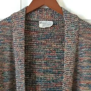Kimlon 80's Vintage Chunky Space Dye Knit Open Front Cardigan Sweater