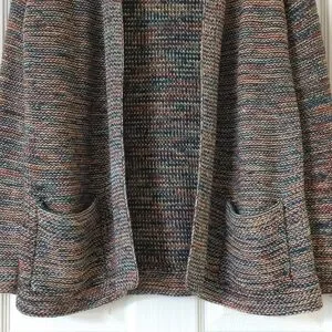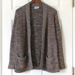 VTG and straight out of the 80s - This super cute cardigan sweater features long sleeves, an open front, and open pockets on the hips. It has a neutral rainbow colored space dye knit that is chunky, thick, warm and comfy. It has a relaxed, loose fit. Perfect to layer over camisoles and graphic t-shirts paired with high rise mom jeans for a retro streetwear look. Perfect transition piece, very versatile! Classic, unique, different and nostalgic! So cute and rare!