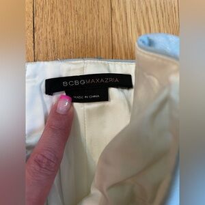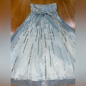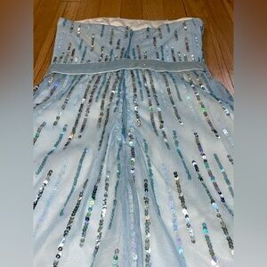 Chic BCBG Max Azria light blue strapless dress with sparkling sequins. Ideal for elegant events.