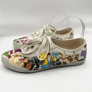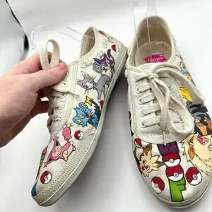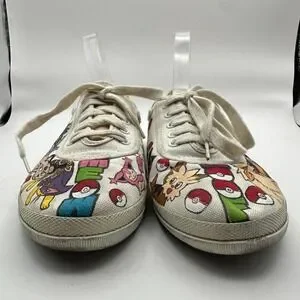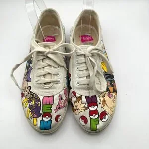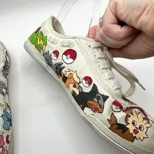 Hand Painted Pokemon Shoes Size 8 WIDE Custom Anime Manga Fan Art Canvas Comicon