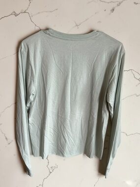 Casual long sleeve tee featuring a Bluy family graphic. Soft, lightweight fabric for everyday comfort. Light sage green color offers a fresh, versatile look. Easy to pair with jeans or joggers for a relaxed outfit.