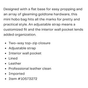 Suede crescent hobo with smooth leather shoulder strap. Gold-tone buckle accents and leather tassel. Curved silhouette for easy carry. Casual yet refined look.