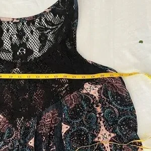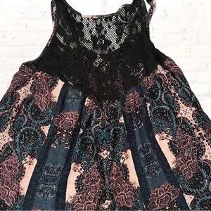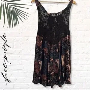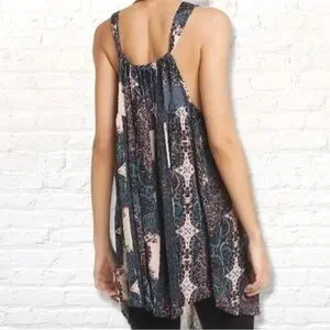 Free People Count Me in Trapeze Tunic Top in Black Floral Combo - Size S
