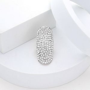 Clear Silver Long Shield Rhinestone Crystal Shell Stretch Statement Ring Finger