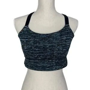 Lululemon “Both Ways” sports bra in size 10. Features a flattering scoop neckline with adjustable straps that can be worn multiple ways, including a crisscross back. Supportive fit with a unique blue and black pattern — perfect for workouts or everyday athleisure wear.